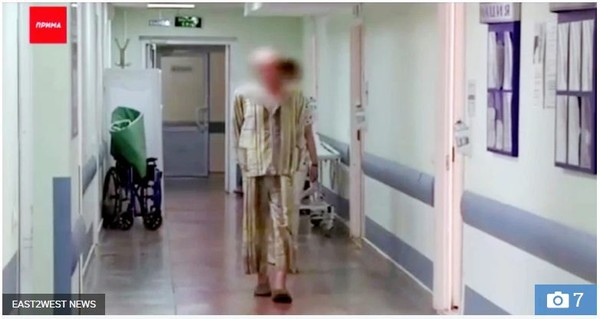 Vladimir đi bộ ở hành lang bệnh viện sau khi anh được cứu sống. Ảnh The Sun.