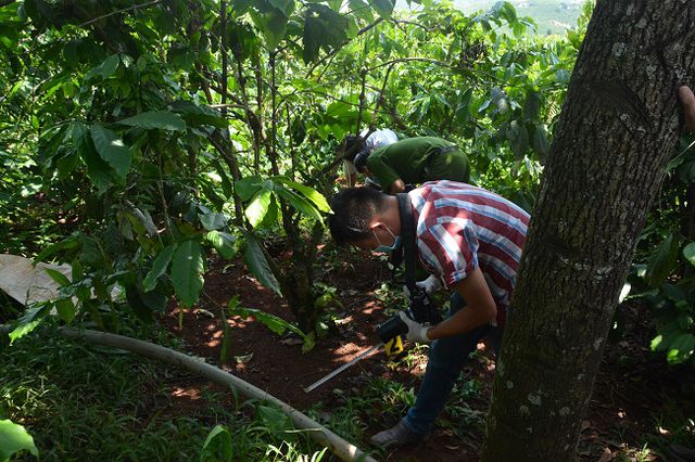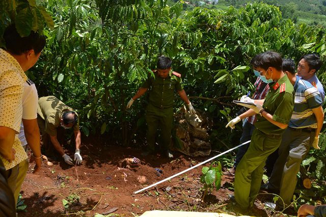 Tại hiện trường, thi thể 3 bà cháu được chôn lấp rất sơ sài bên một triền đồi trong rẫy cà phê khoảng 10 năm tuổi. Trên thi thể các nạn nhân có nhiều vết thương hở do vật sắc cắt vào.