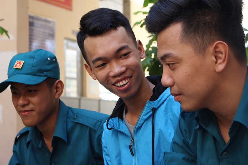 Sang trò chuyện cùng bạn bè trong khuôn viên UBND phường Tam Bình, quận Thủ Đức. Ảnh: M.M