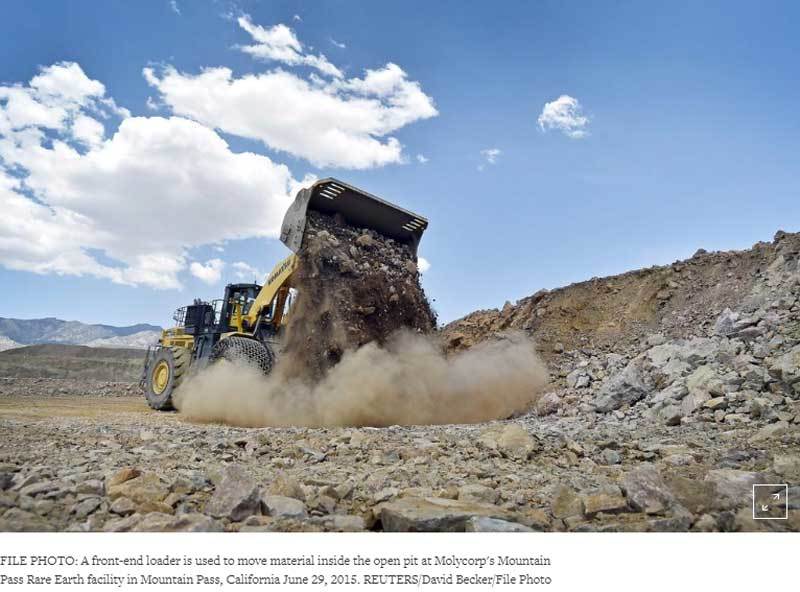 Mỏ khai thác đất hiếm duy nhất hoạt động của Mỹ tại bang California - Mountain Pass đang nằm trong tay MP Materials. Công ty này, cũng theo Reuters, chuyển khoảng 50 ngàn tấn quặng về Trung Quốc để tinh chế thì mới có thể sử dụng. Trung Quốc đã áp thuế 25% lên mặt hàng này trong cuộc chiến tranh thương mại với Mỹ.