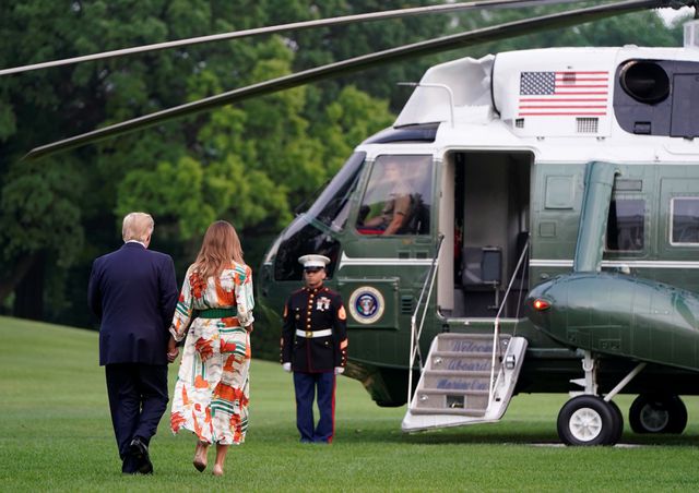 Từ giây phút bà bước lên Không lực Một, trong chiếc váy bằng lụa của nhà mốt Gucci với các họa tiết tháp đồng hồ Big Ben, Nhà Quốc hội Anh và tượng Nữ thần Tự do của Mỹ. Chiếc váy có giá gần 3.400 USD được coi là như là ấn tượng ban đầu bà Melania muốn mang tới Anh hơi thở của thành phố London nhằm tạo nên một hình ảnh ngoại giao ấn tượng trong mắt công chúng nước bạn.