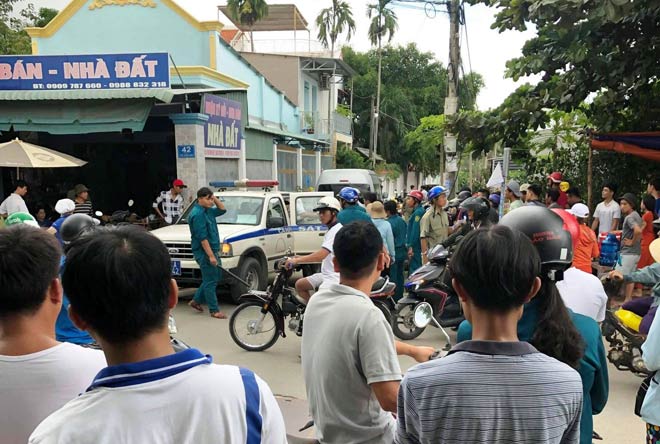 Nhiều người hiếu kỳ đứng xung quanh khu vực căn nhà trên đường Võ Văn Hát để xem công an làm việc.