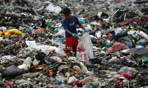 Trẻ em gom phế liệu nhựa tại một bãi rác của Malaysia. Ảnh: Reuters.