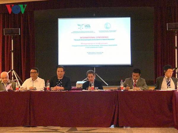 Hội thảo do Hội Luật gia dân chủ quốc tế (IADL) và Quỹ quốc tế “Con đường Hòa bình” phối hợp tổ chức, trước bối cảnh có nhiều diễn biến căng thẳng và phức tạp tại khu vực Biển Đông. Các đại biểu Việt Nam từ Hội Luật gia và Học Viện Ngoại giao tham dự hội thảo.