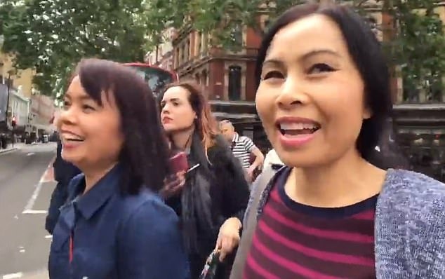 Vụ việc đen đủi xảy ra khi hai người đang quay video đi bộ từ ngã ba Cambridge Circus tới Nhà hát Palace, trung tâm London.