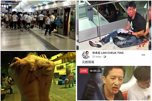 Truyền thông Hồng Kông cho biết, hàng trăm người mặc áo trắng tay cầm hung khí chủ động tấn công, đuổi đánh người diễu hành mặc áo đen và phóng viên ở nhà ga tàu điện ngầm khi họ đợi tàu để về nhà. Sau đó, một phóng viên của của The Stand News bị đánh bị thương, nghị viên Hội đồng Lập pháp phe Dân chủ Lâm Trác Đình cũng bị tấn công, mặt ông chảy đầy máu.