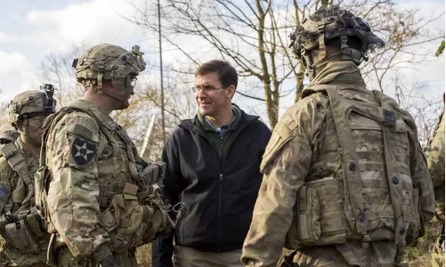 Esper (áo đen) thăm binh sĩ Mỹ tại châu Âu khi còn làm Bộ trưởng Lục quân. Ảnh: US Army.