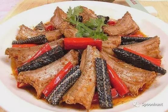 Có lẽ đây là đặc sản Quảng Châu đáng sợ nhất (ít nhất là với người nước ngoài). Món ăn này được gọi là “Rồng chiến đấu với hổ” vì nó được làm từ thịt rắn và thịt mèo hoang, giống như cả rồng và hổ. Gà đen có thể được thêm vào, cho món ăn thêm một thành phần của "phượng hoàng". Tất cả được nấu trong một món súp với nấm mùa đông và chà là.