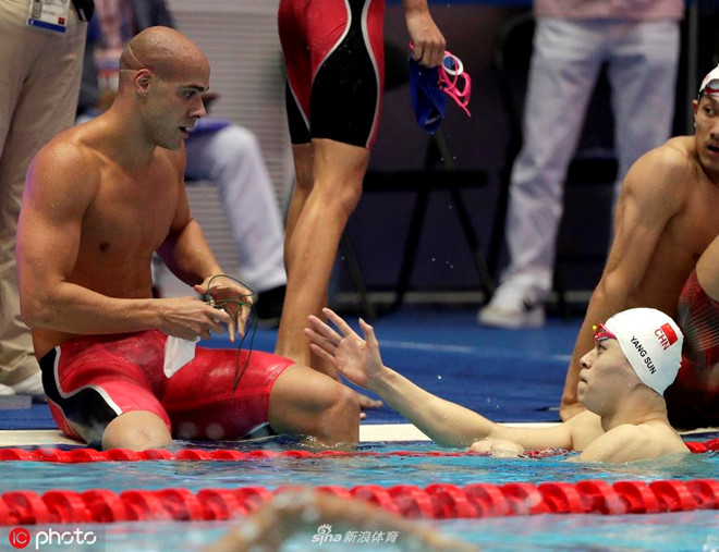Chủ động bắt tay đối thủ sau khi hoàn thành phần thi tiếp sức nội dung 4x200 m tự do nam, nhưng Sun Yang đã bị kình ngư Brazil thẳng thừng từ chối.