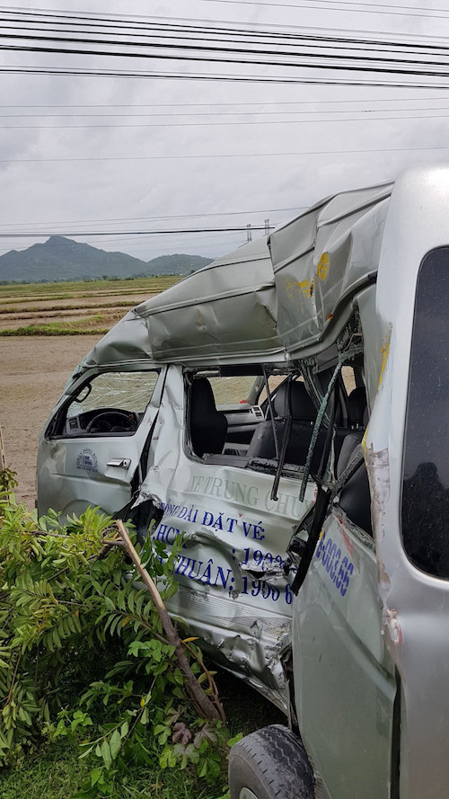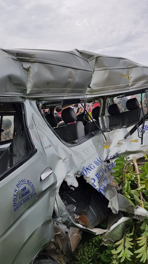 Đến 10 giờ 30 ngày 31.7, CSGT đã xác định được danh tính 2 nạn nhân tử vong là Đặng Thị Bích Dân (10 tuổi) và Đặng Thị Bích Trân (21 tuổi, chị ruột của Bích Dân). Hành khách bị thương nặng được đưa đi cấp cứu là Hồ Đàng Thái Lan Anh (18 tuổi, cùng trú thôn Tuy Tịnh 2, xã Phong Phú, H.Tuy Phong). Danh tính tài xế tử vong vẫn chưa xác định.