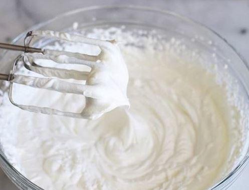 Bước 2: Cho whipping cream vào ngăn lạnh của tủ lạnh, đến khi kem đóng thành khối mềm. Cho kem ra tô và dùng máy đánh trứng đánh bông cứng kem. Thêm phần sữa đặc, trộn nhẹ tay. Không nên đánh quá lâu, kem dễ bị tách nước.