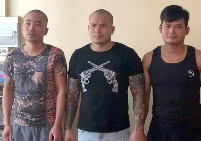 Quang (giữa) và đồng bọn bị tạm giữ. Ảnh: N.H.