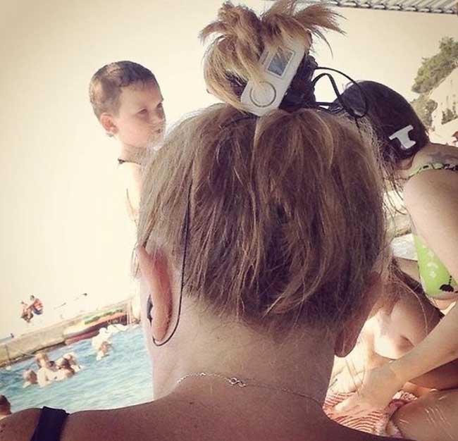 9. Nếu sợ máy nghe nhạc bị ướt, hãy quấn nó lên tóc như 1 chiếc dây cột tóc