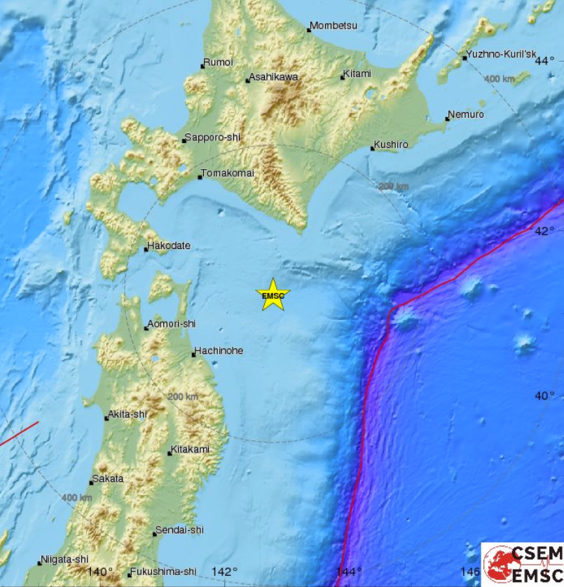 Theo Cơ quan khí tượng Nhật Bản, trận động đất xảy ra lúc 8h46 (giờ địa phương). Tâm chấn ở tọa độ 41 độ vĩ Bắc và 143 độ kinh Đông, ngoài khơi tỉnh Aomori, ở độ sâu khoảng 10 km.