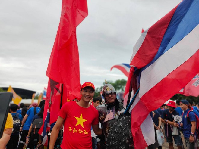 Rất đông các CĐV Việt Nam đã có mặt trước cổng sân vận động Thammasat để tiếp thêm sức mạnh cho đoàn quân Park Hang Seo