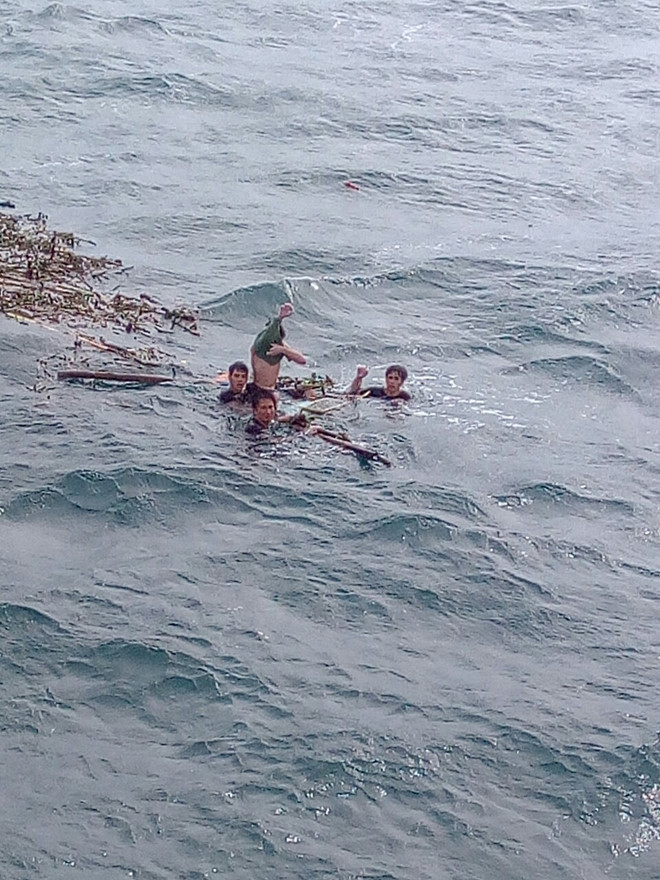 Đến 9 giờ ngày 6.9, tàu CN 09 phát hiện được 4 người đang bám trên 1 tấm ván gỗ, lênh đênh trên vùng vùng biển giáp ranh giữa Quảng Bình và Quảng Trị, cách bờ khoảng 18 hải lý.