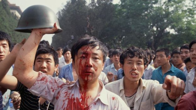 Một sinh viên bị thương trong cuộc đụng độ giữ lực lượng Quân đội Nhân dân Trung Hoa và người biểu tình vào tháng 6/1989