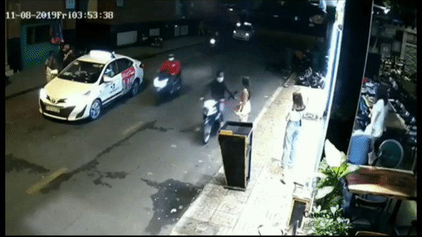 Đoạn clip trích xuất từ camera an ninh cho thấy, sự việc xảy ra vào khoảng gần 4h ngày 8/11. Cô gái đang đứng trên vỉa hè thì một đối tượng chạy xe máy lại gần và giật mạnh túi xách.
