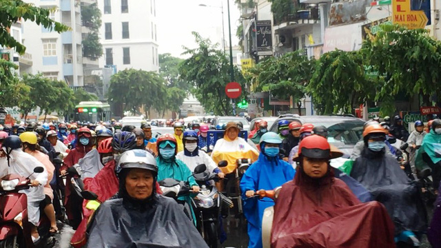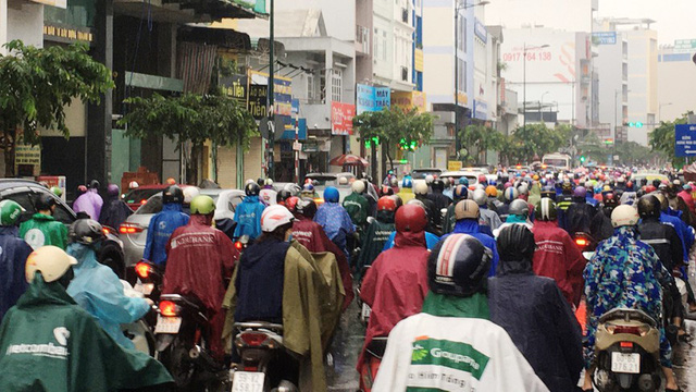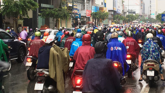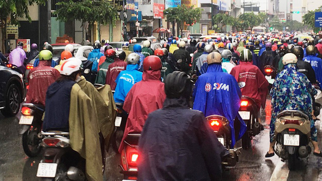 Tình trạng mưa kéo dài kèm theo kẹt xe khiến người dân gặp rất nhiều khó khăn trong ngày đầu tuần.