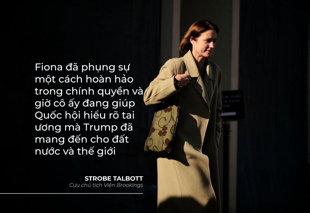"Fiona đã phụng sự một cách hoàn hảo trong chính quyền và giờ bà ấy đang giúp Quốc hội hiểu rõ tai ương mà Trump đã mang đến cho đất nước và thế giới", Strobe Talbott, cựu chủ tịch Viện Brookings, bình luận.