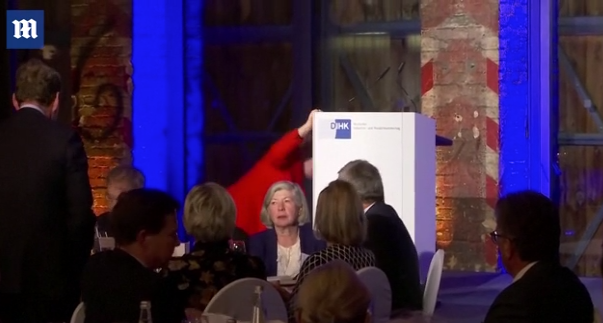 Thủ tướng Đức chắc chắn có vấn đề. Bà đã bị ngã khi lên sân khấu phát biểu vấp ngã khi lên sân khấu phát biểu trong một sự kiện kinh doanh ở Berlin hôm 28/11. Bà Merkel nói đùa sau khi đứng dậy trở lại "Tôi không nhìn thấy cầu thang, tôi sẽ tìm thấy chúng lần sau"