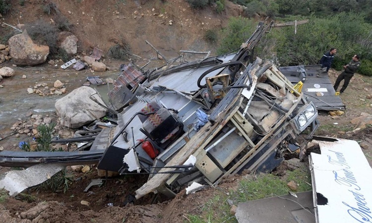 Hôm qua 1/12, một chiếc xe buýt chở 43 hành khách đi tham quan bị mất lái và lao xuống khe núi ở khu vực Ain Snoussi khiến ít nhất 24 người chết.