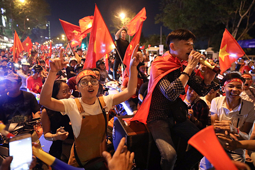 Sau chiến thắng trước Qatar ở trận bán kết U23 Châu Á, hàng nghìn người hâm mộ đổ xuống đường trên những chiếc xe tay ga, với tiếng bíp còi liên hồi. Những người ở sau cầm cờ Việt Nam, diễu hành vòng quanh các con phố. "Tôi còn thấy những chiếc xe tải chở người hâm mộ, họ cười tươi, cầm trống và hô vang khẩu hiệu trên đường phố".