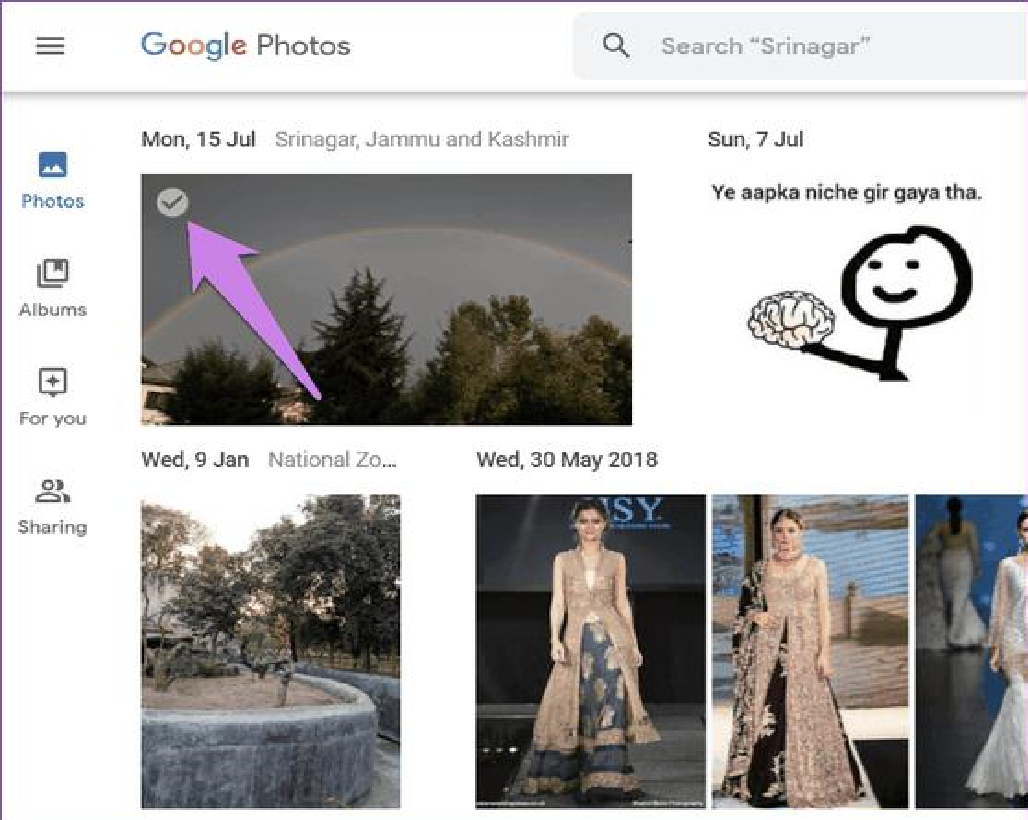 - Bước 2: Chọn những tấm ảnh cần tải về bằng cách bấm vào biểu tượng chữ “v” ở góc trái bức ảnh. Lưu ý, nếu muốn chọn nhiều ảnh cùng lúc, bạn chỉ cần chọn ảnh đầu tiên, sau đó bấm phím Shift và chọn ảnh cuối cùng.
