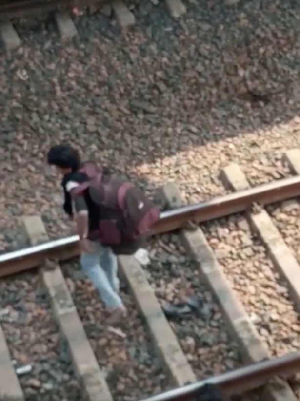 Cậu bé nằm im bất động khi đoàn tàu chạy qua