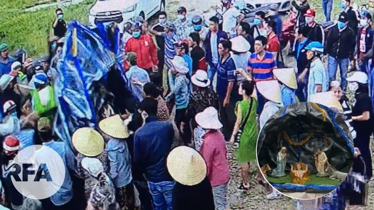 Chiều 8/12/2019, người dân cho thấy hàng chục người mặc thường phục đeo khẩu trang giật sập hang đá Đức Mẹ và Chúa hài đồng được người dân Vườn rau Lộc Hưng dựng lên để mừng Giáng sinh 2019.