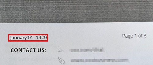 Một hóa đơn ghi ngày xuất là 1/1/1920.