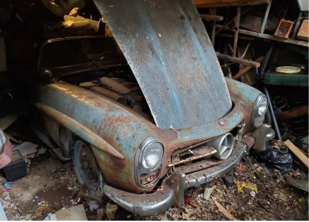 Chiếc Mercedes 300SL đời 1961 ‘rỉ sét’ này được tìm thấy trong một nhà kho cũ và là một trong những kiểu xe hiếm có trên thế giới. Chỉ có 256 chiếc như thế này từng được sản xuất từ năm 1961.