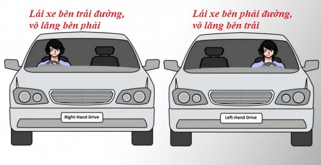 Ở những nơi có quy định RHT thì cấu hình xe sẽ có vô lăng bên trái, còn ở các nước có quy định LHT thì cấu hình xe ngược lái, vô lăng xe ôtô được thiết kế bên phải. Như thế thì vị trí ngồi của lái xe sẽ sát với trung tâm của đường đi, và hành khách ngồi bên sẽ ở gần vị trí lề đường nhất. Cần gạt nước trên kính chắn gió chạy đường LHT cũng sẽ gạt từ trái qua phải ngược lại với xe chạy RHT theo hướng nhìn của lái xe.