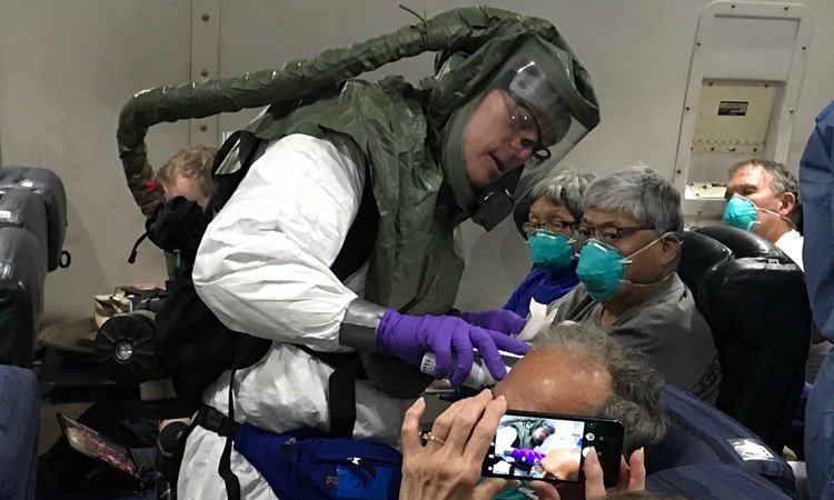 Theo Bộ Ngoại giao, các công dân Mỹ được đưa lên khoảng 15 xe buýt tới sân bay. Khi biết tin có người dương tính với virus, những hành khách nhiễm bệnh "đã được di chuyển nhanh chóng và an toàn nhất có thể tới một khu vực cách ly chuyên dụng" ở phần cuối máy bay.