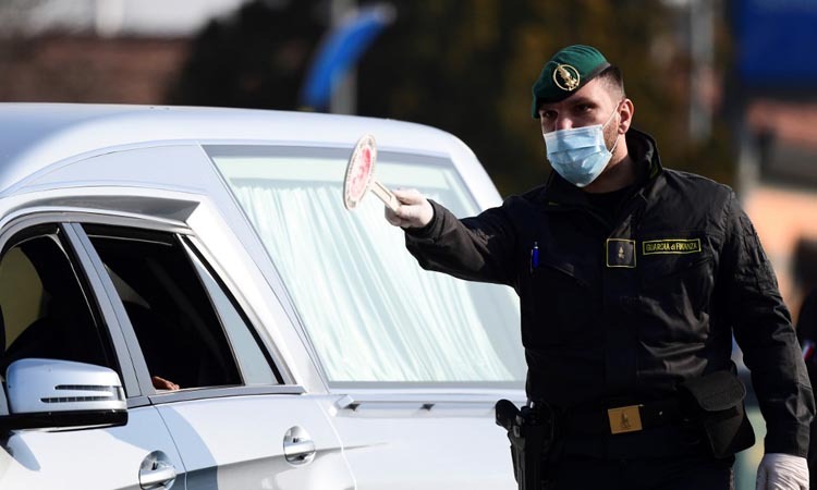 Nhân viên an ninh điều khiển giao thông tại một trạm kiểm soát ở thị trấn Zorlesco, vùng Lombardy, Italy hôm 24/2. Ảnh: AFP.