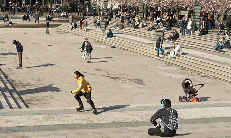 Ngày tháng 4 trời ngập nắng, ai cũng muốn ra ngoài trời thưởng thức cuộc sống thiên nhiên, thế nhưng phải hạn chế vì dịch covid-19. Tuy nhiên ở Medborgarplatsen, quảng trường trung tâm ở thủ đô Stockholm, đám đông vẫn vô tư tụ tập vui chơi, tắm nắng.