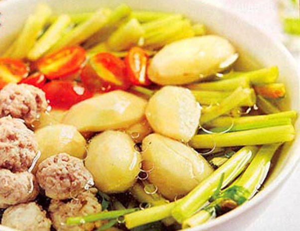 Canh hạt sầu riêng nấu thịt viên