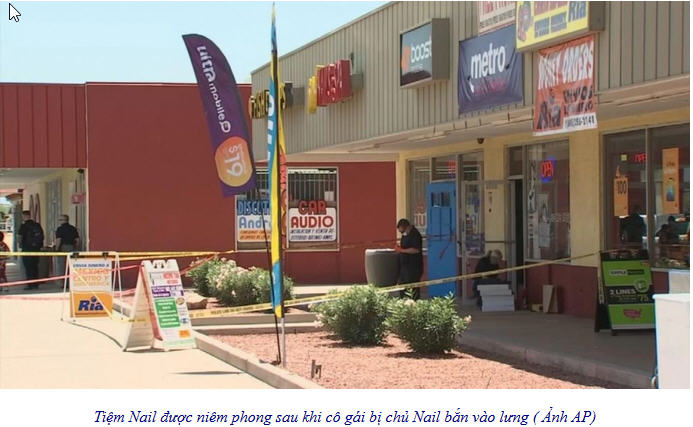 Tiệm Nail được niêm phong sau khi cô gái bị chủ Nail bắn vào lưng ( Ảnh AP)
