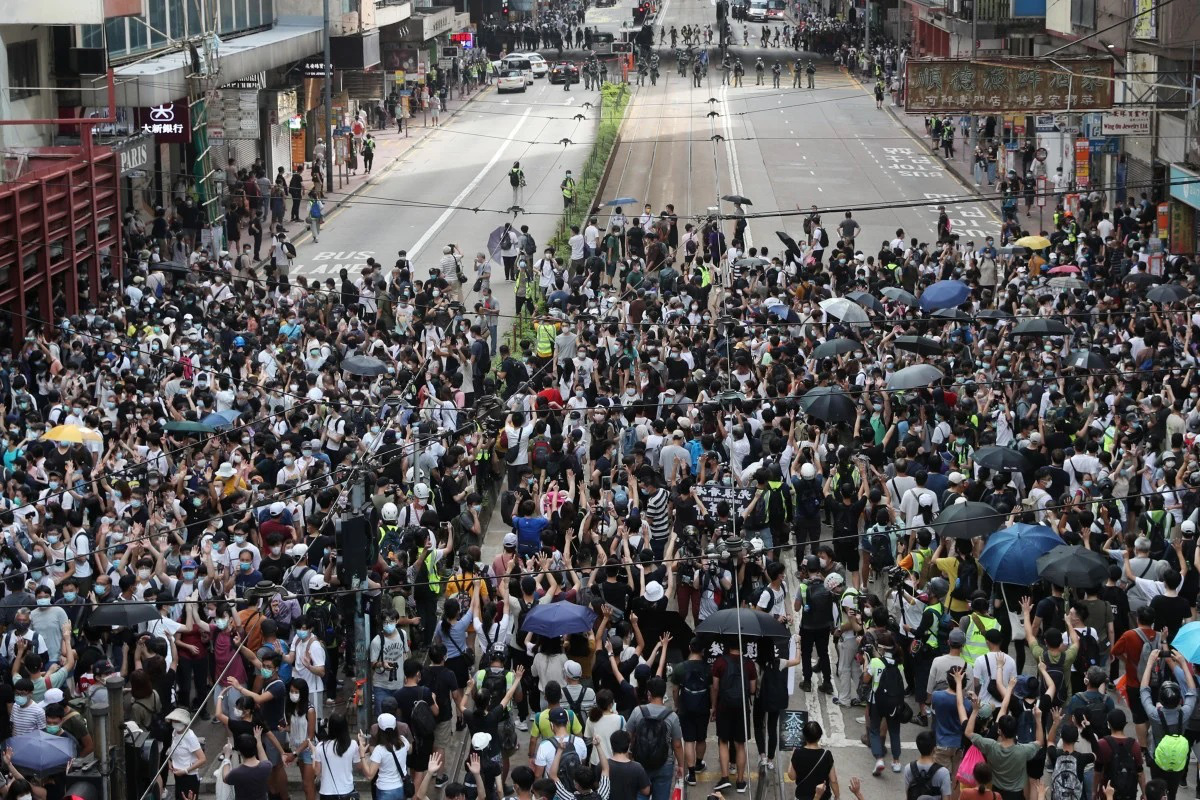 Hàng nghìn người trước đó đã xuống đường tuần hành bất chấp lệnh cấm biểu tình để phản đối luật trên. Người biểu tình tuyên bố rằng họ đang bảo vệ các quyền tự do của mình trước luật an ninh mới gây tranh cãi.