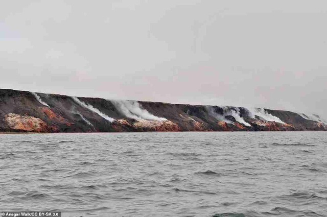 Suốt nhiều năm, khí lưu huỳnh đioxit đốt cháy làm thay đổi độ oxit của ngọn đổi khiến hệ sinh thái tại đây thay đổi. Những lớp đá nung dưới sức nóng đã chuyển thành màu đỏ, cam rực rỡ trên vách đá, xuất hiện mờ ảo dưới lớp khói.