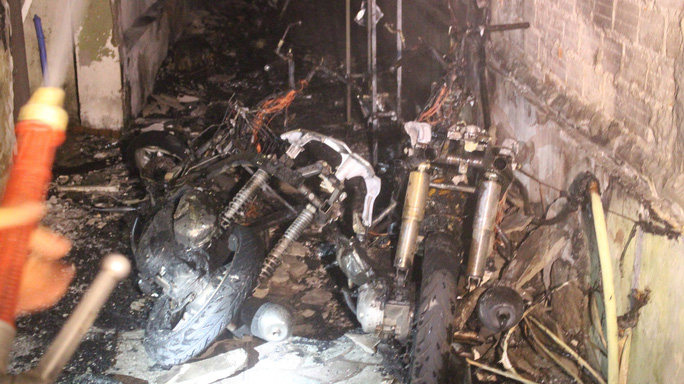 2 xe máy cháy trơ khung tại điểm bùng phát ngọn lửa
