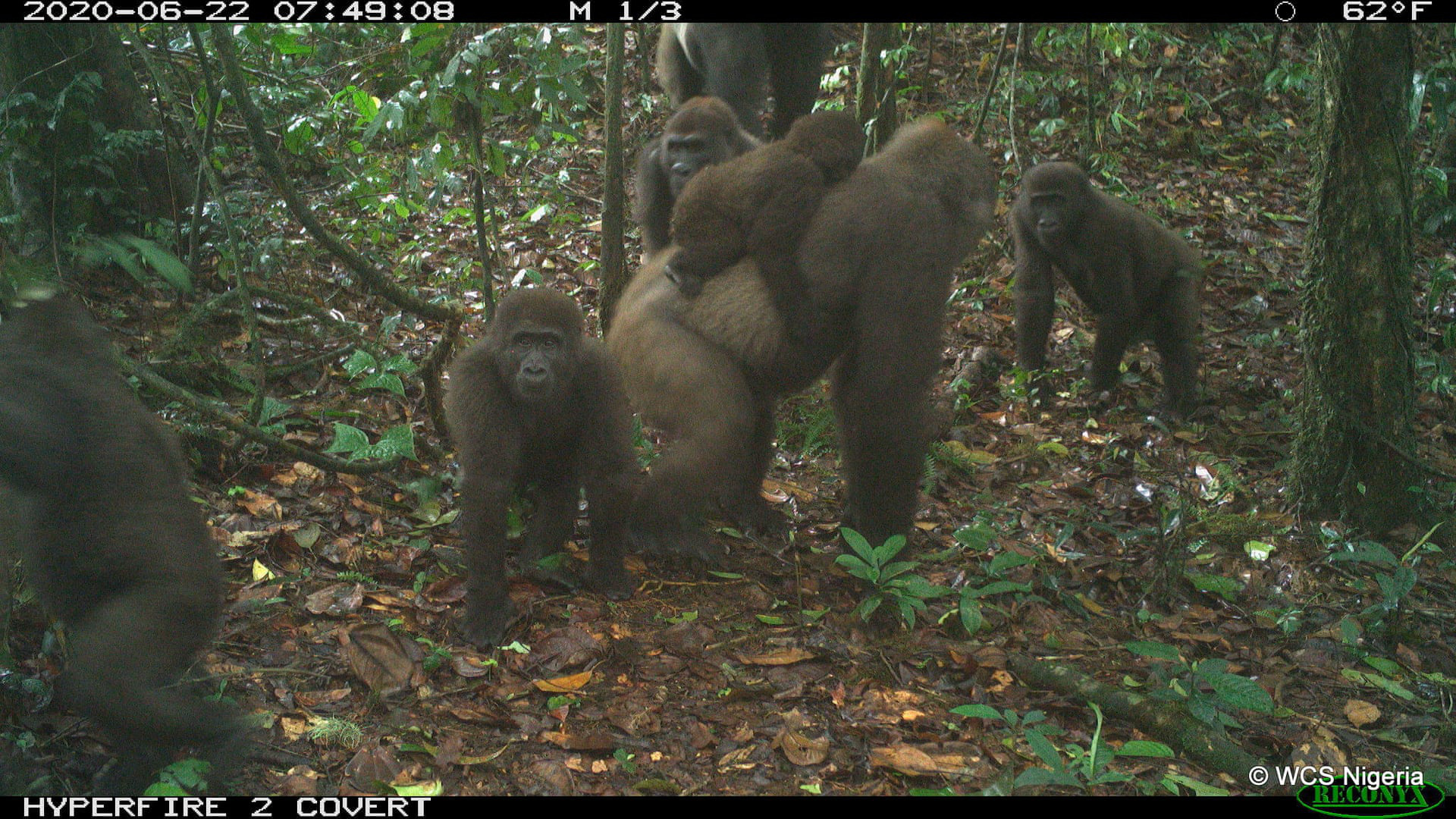 Tại núi Mbe, Nigeria, người ta chụp được một bức ảnh hiếm hoi của một bầy khỉ đột thuộc giống loài đang rơi vào tình trạng nguy cấp bậc nhất trên thế giới, bức ảnh cho chúng ta thấy sự phục hồi của chúng sau nhiều thập kỷ bị đàn áp. Tác giả: WCS Nigeria.