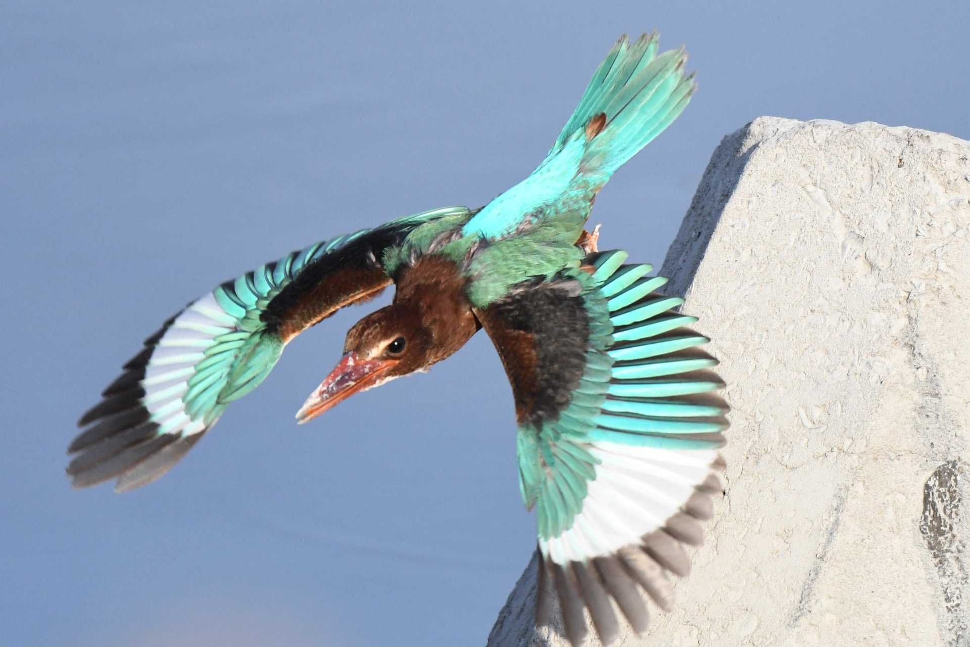 Một con chim bói cá miệng trắng đang bay trên vùng biển của thành phố Kuwait. Tác giả: Ghazy Qaffaf.