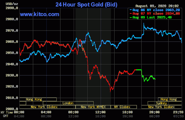 Trên thế giới, lúc 7h sáng nay 10/8 (giờ Việt Nam), giá vàng giao ngay tại châu Á qua niêm yết của Kitco.com có biên độ giảm tiếp xuống còn 2.026,3 USD/ounce.