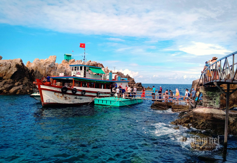 Mỗi ngày, công ty du lịch chỉ bán 300 vé ra tham quan đảo yến Hòn Nội. Ảnh Ngọc Hải