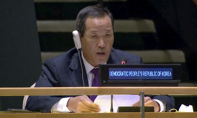 Đại sứ Kim Song phát biểu trước Đại hội đồng Liên Hợp Quốc hôm 29/9. Ảnh: Liên Hợp Quốc.