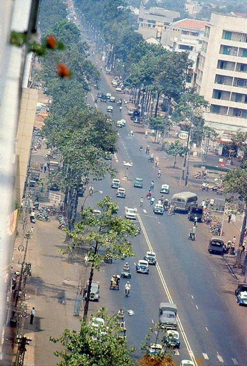 Saigon 1972 – Đường Hồng Thập Tự (nay là Nguyễn Thị Minh Khai). Ngã tư đằng trước là Hồng Thập Tự – Công Lý (nay là Nguyễn Thị Minh Khai – Nam Kỳ Khởi Nghĩa). Bên phải là trường Lê Quý Đôn.