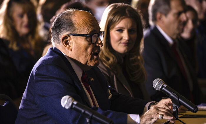 The U.S. Constitution, Giuliani said, stipulates that state legislatures have the authority to certify a state’s electors. “You, the legislature of Arizona, have the plenary power to regulate the selection of electors in a presidential election,” he said, adding that the Supreme Court has ruled that state Houses and Senates can reclaim the power to name electors.