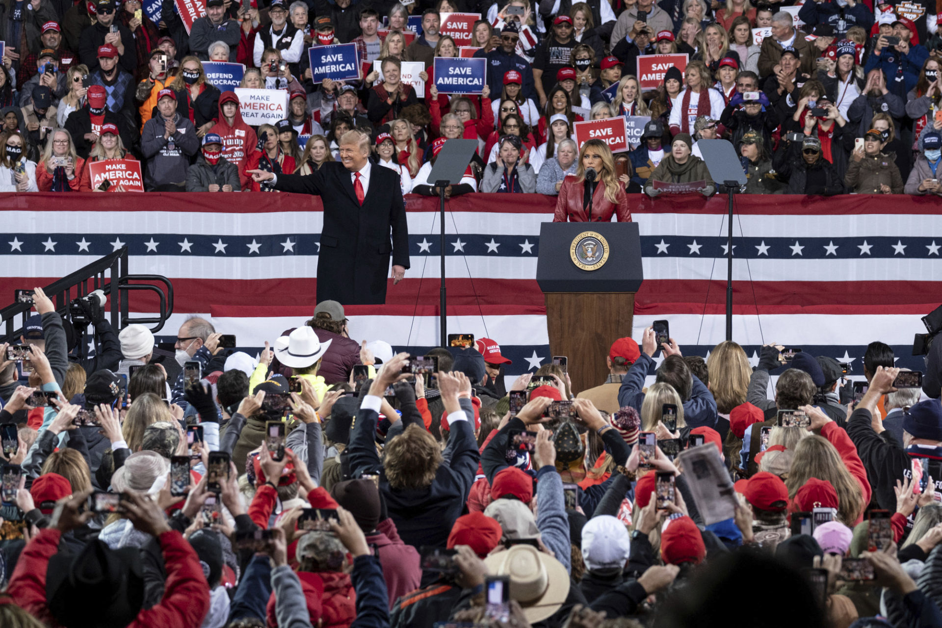 Cùng với Đệ Nhất Phu Nhân Melania Trump, ông Trump đến gặp gỡ cử tri ở Valdosta, Georgia, để kêu gọi bỏ phiếu cho hai thượng nghị sĩ Cộng Hòa David Perdue và Kelly Loeffler trong cuộc bầu cử Thượng Viện vòng hai sắp tới. Kết quả cuộc bầu cử này sẽ quyết định đảng nào nắm thế đa số ở Thượng Viện Hoa Kỳ.