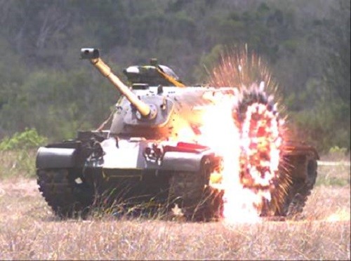 Tên lửa chống tăng Kestrel phá hủy một xe tăng giả định trong cuộc tập trận.